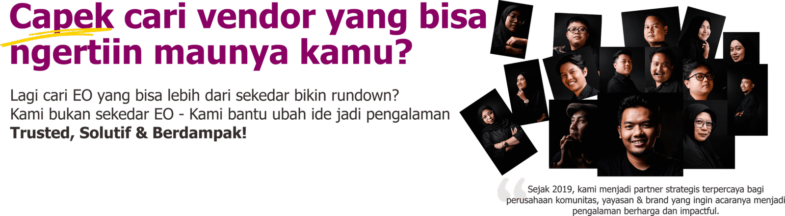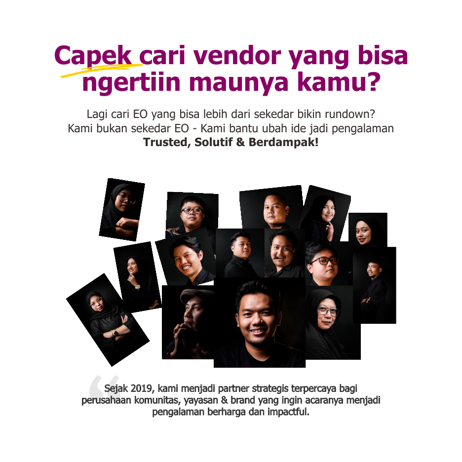 Lebih dari sekadar Event Organizer, kami hadir dengan solusi lengkap, tim yang dapat dipercaya, dan berdampak.