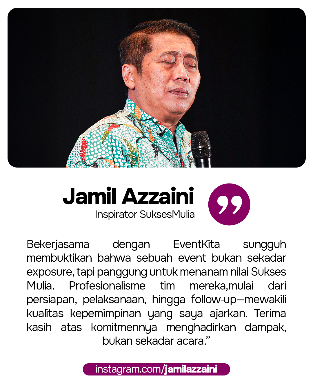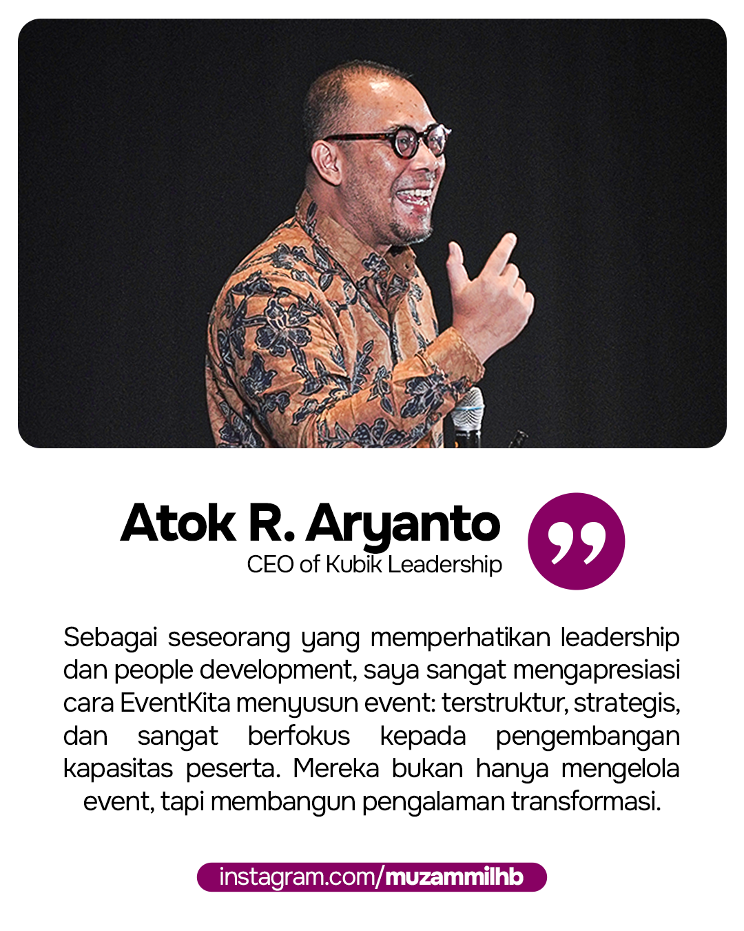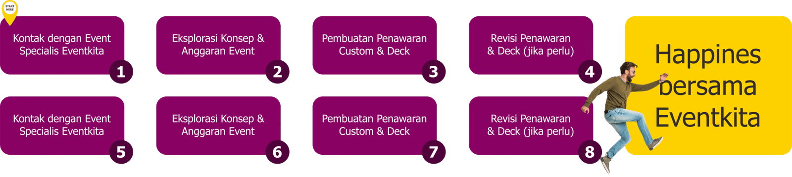 Halo! Perkenalkan, kami eventkita Event Organizer & Beyond adalah partner strategis yang mengubah ide menjadi pengalaman. Partner solutif yang siap bantu perusahaan, komunitas, yayasan atau brand mewujudkan event dan aktivasi yang impactful. Sejak 2019, kami berdedikasi untuk menjadi partner yang benar-benar memahami dan mewujudkan visi klien.